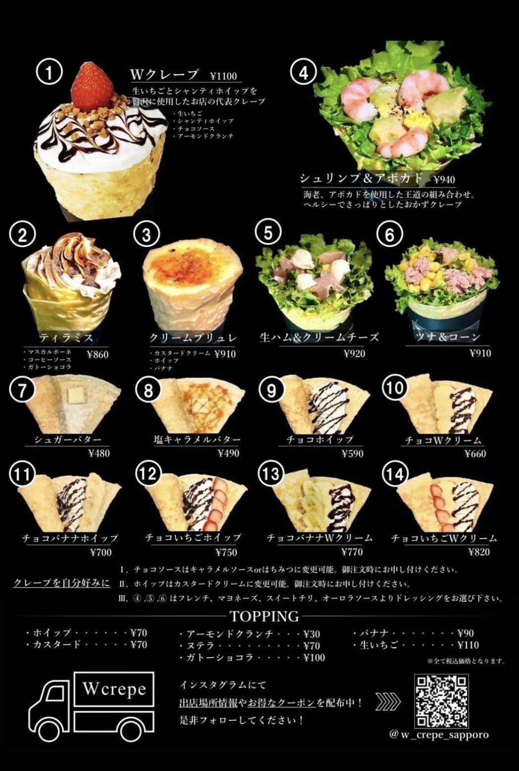 スイーツ系もおかず系も選べる、香ばしいサクッと食感のクレープ。